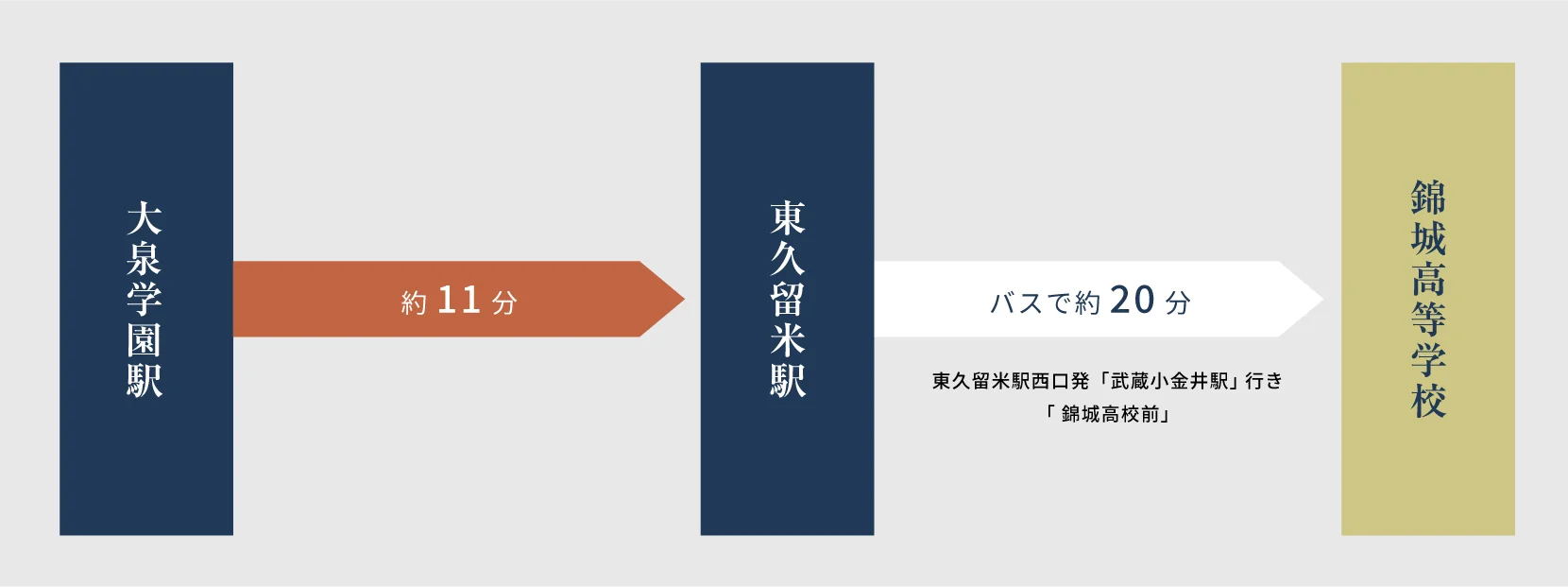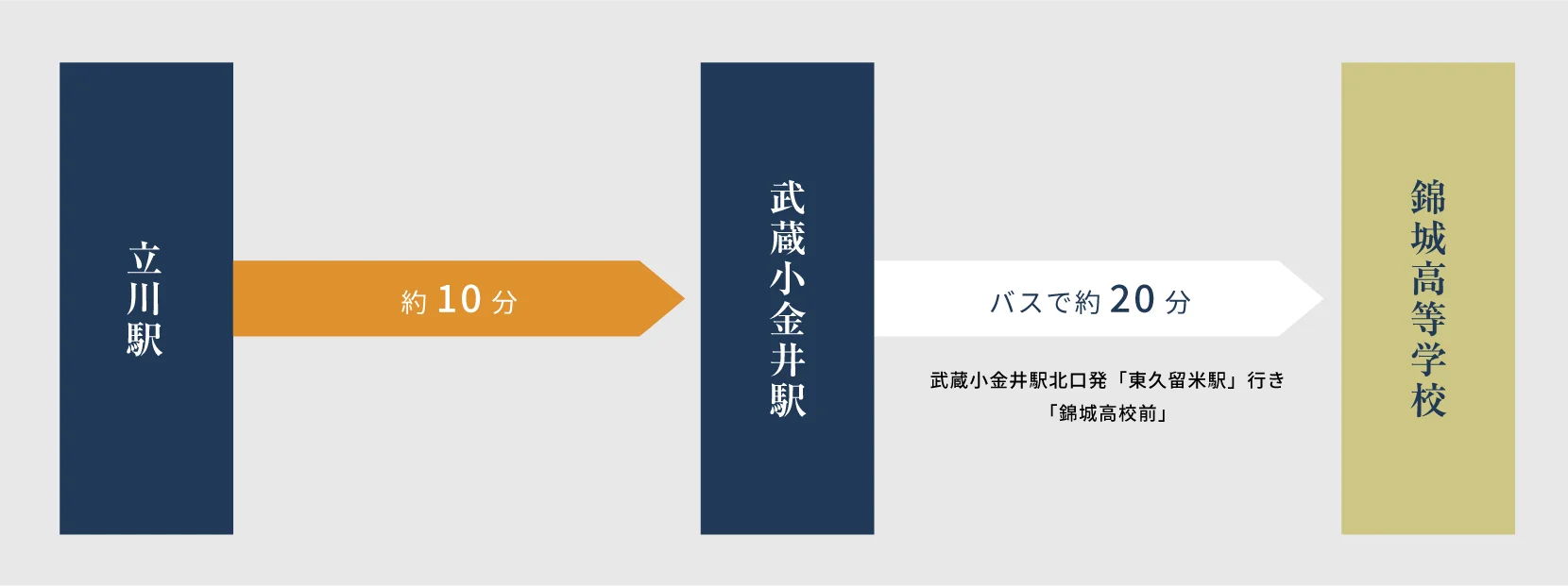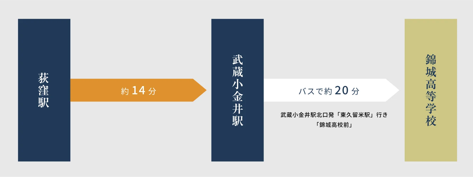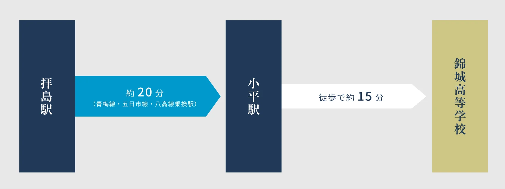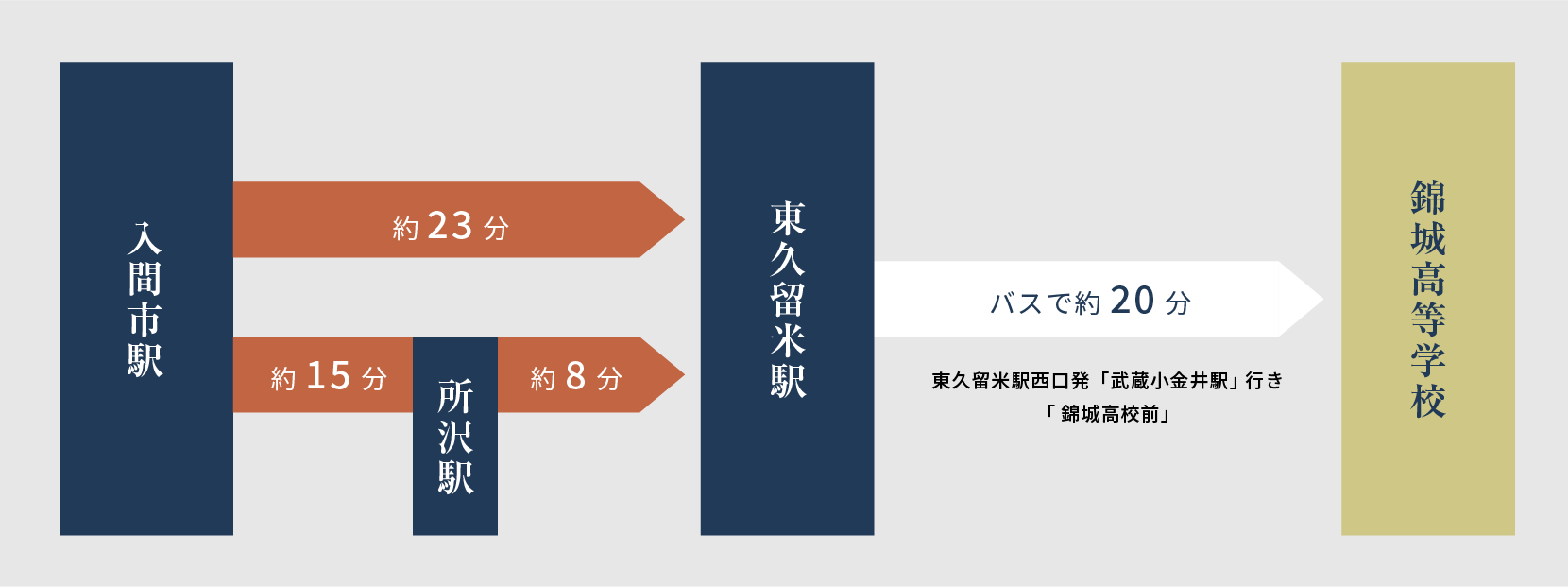 数字は錦城高校の最寄り駅までの時間を表しています。