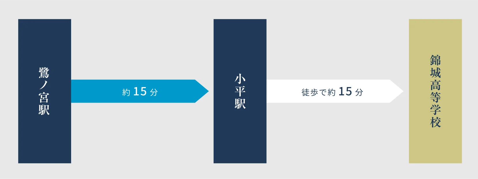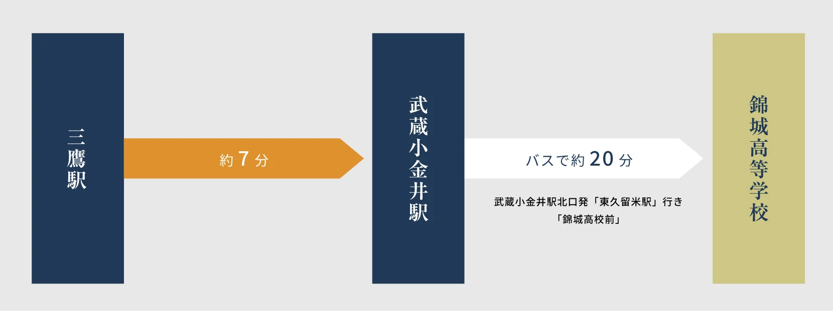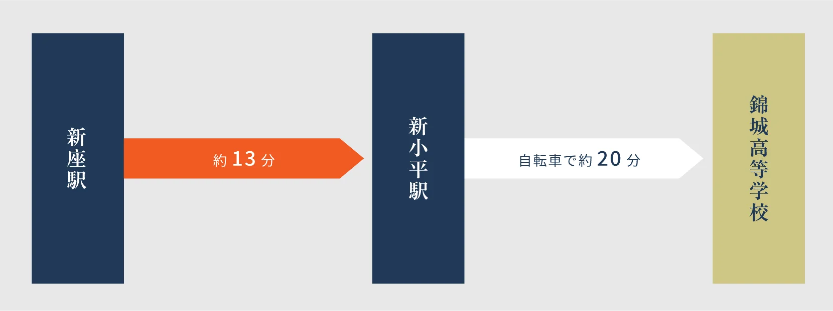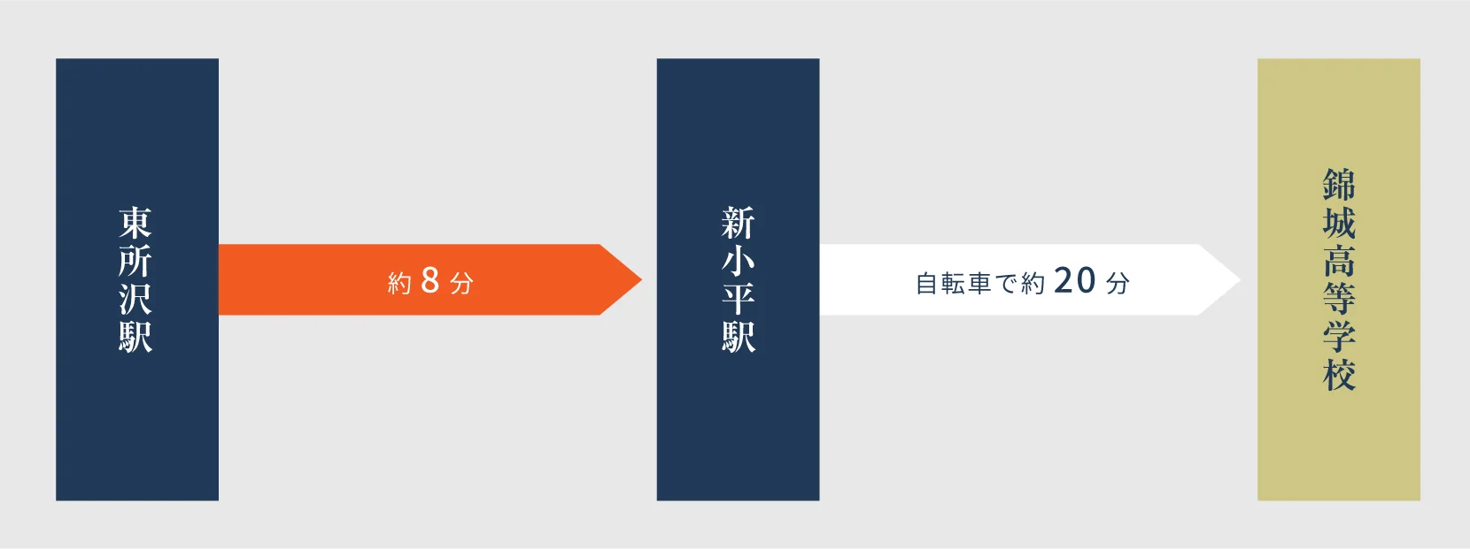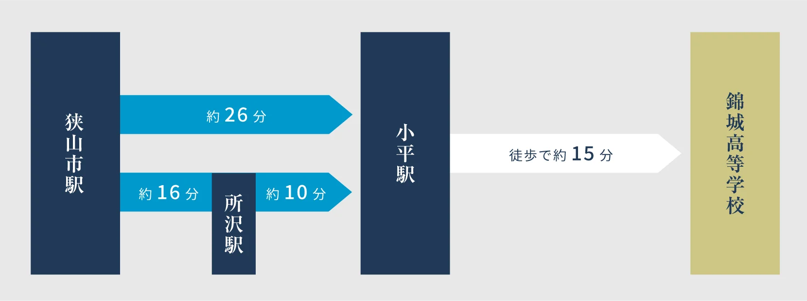 数字は錦城高校の最寄り駅までの時間を表しています。
