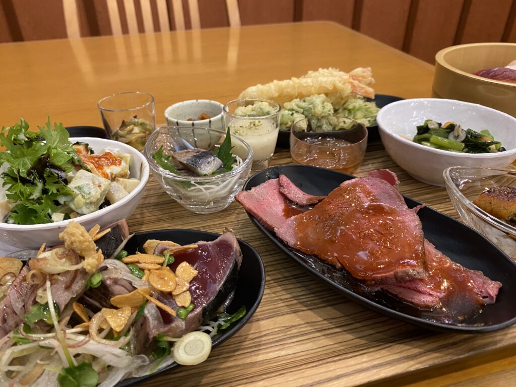 食事はビュッフェ形式につき、各自が栄養バランスを考えて食べるものを選びました