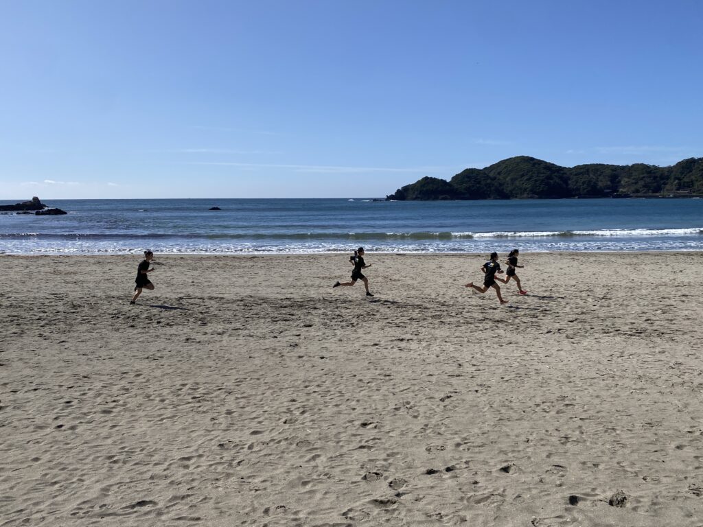 2日目は短距離は砂浜ダッシュ、中長距離はホテルを拠点にロングジョグを行いました