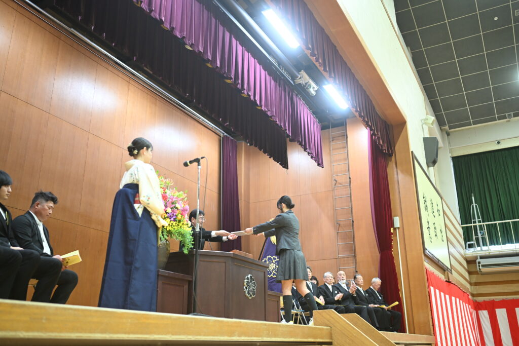 卒業証書授与では、担任によって一人ひとりの名前が読み上げられた後、クラスの代表生徒が卒業証書を受け取りました。