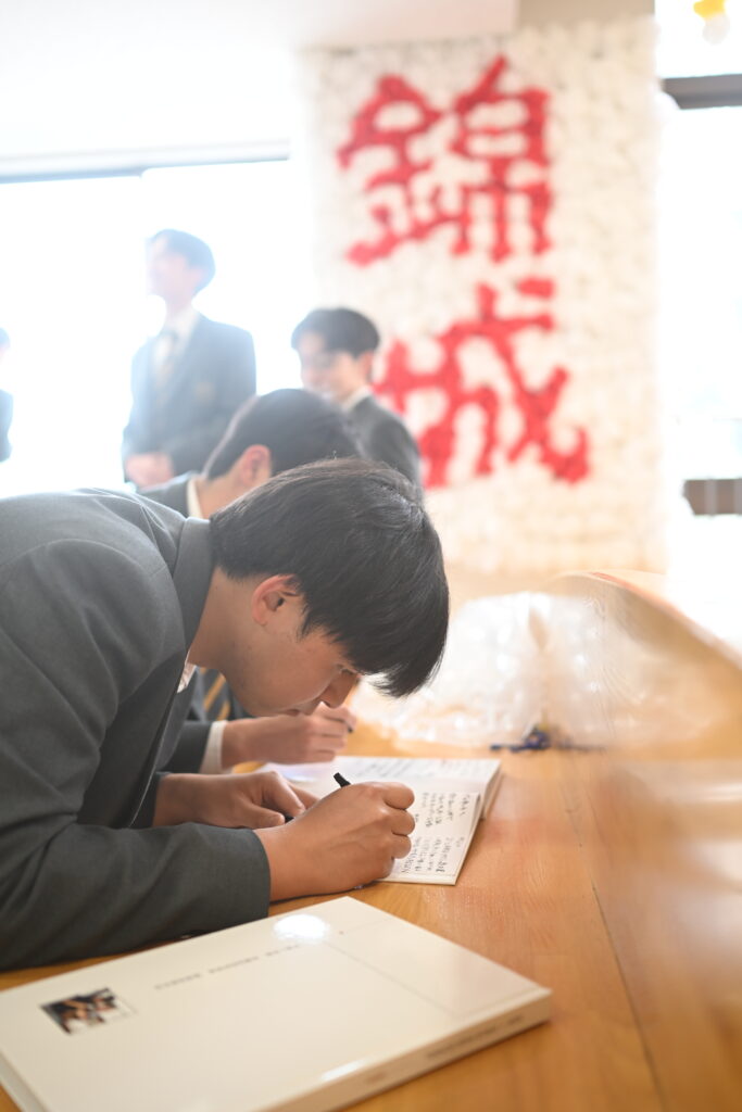 ホームルーム後には、卒業アルバムにメッセージを書き合う姿が見られました。