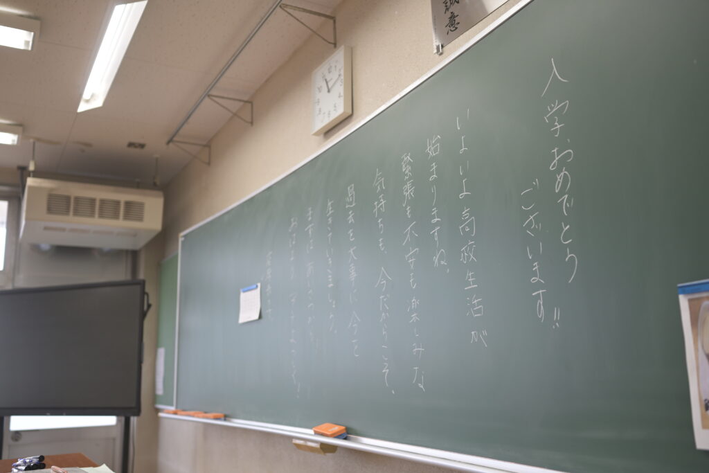 緊張する新入生に対し、優しく話しかける担任の姿がありました。