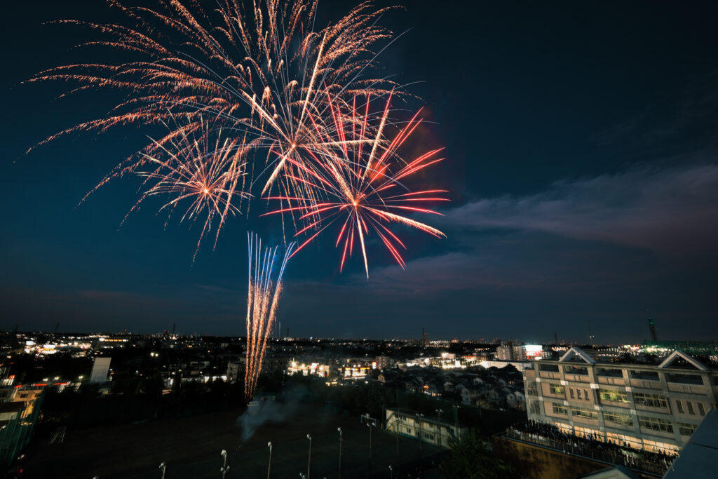 3年目となった後夜祭のラストを飾る花火企画。今年は外部の業者に打ち上げを依頼し、大迫力の花火に生徒から歓声が上がっていました。